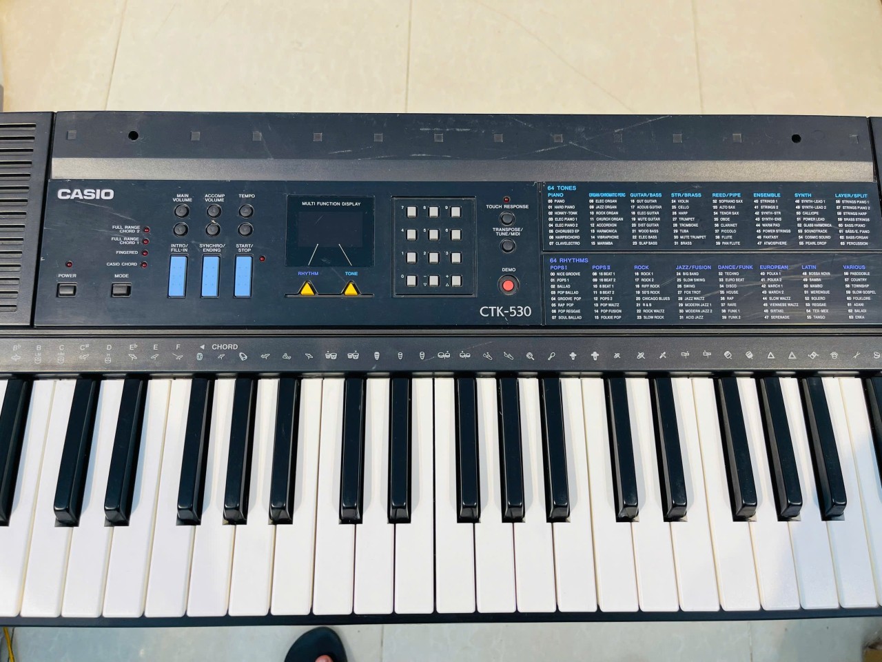 Đàn Organ Casio CTK530 với bàn phím cảm ứng cho chất lượng âm thanh có độ cao – trầm, chơi được như Piano. Cùng thư viện đồ sộ (64 tone, 64 Rhythm) trang bị màn hình điện tử.